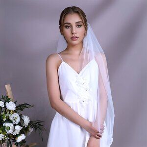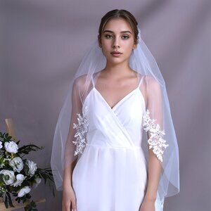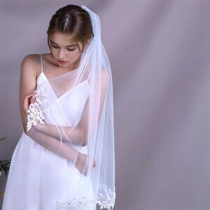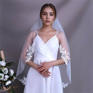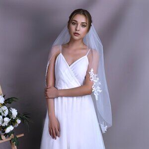 BRIDELLA BV49 Ivory Lace Bridal Short Veil Hip Length Wedding Accessories