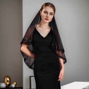 BRIDELLA BV69 Sexy Black Bridal Double Veil Short Waist Length Wedding Veil