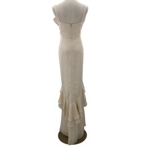 BRIDESMAID AW 12 L cream ruffled formal party wedding guest maxi dress NEW B78