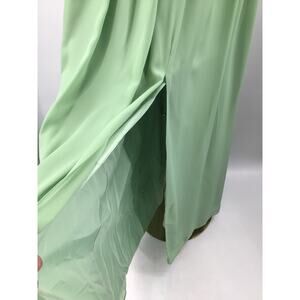 BRIDESMAID SZ 12 L Green Vneck draped sleeve lace up maxi formal dress NEW B49