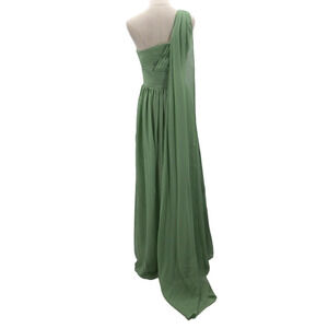 BRIDESMAID SZ 12 L green one shoulder draped pleated formal maxi dress NEW B127