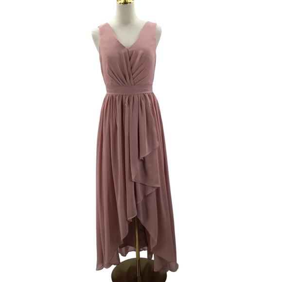 BRIDESMAID SZ 8 M Pink V-Neck Sleeveless Lace Up Hi-Low Maxi Dress NEW B126