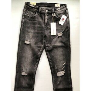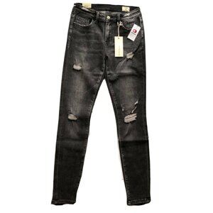 BRIDGE BY GLY Women's Black Destruct Denim Mid-Rise Skinny Stretch Jeans