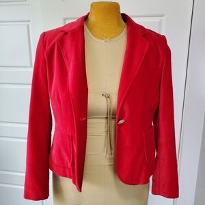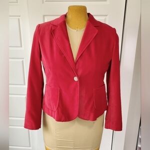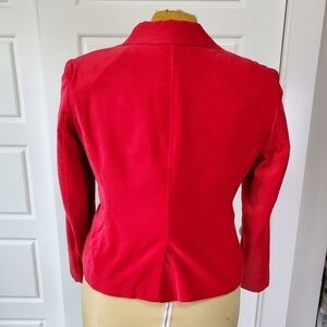 BRIGGS NEW YORK CHERRY RED VELVETEEN ONE BUTTON BLAZER WOMEN LARGE FESTIVE FANCY