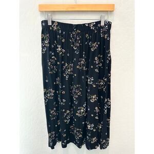 BRIGGS NEW YORK | Vintage Black Floral Pleated Midi Skirt | Size 12
