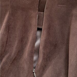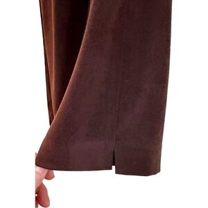 BRIGGS, WOMENS, CASUAL, VELOUR PANTS IN CHOCOLATE BROWN. SIDE ZIP, SIDE SLIT LEG HEM. IN GOOD CONDITION. SIZE 14P