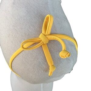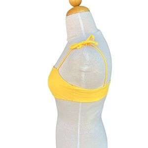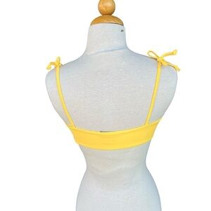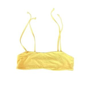 BRIGHT Swimwear Tie-Top Bikini Top. Women’s size small. Bright Yellow color. Bandeau style with straps that tie at the shoulders. Good condition with two areas of minor snagging from normal use.