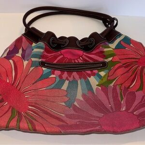 BRIGHTON 3D Flowered embroidered Pink Flowers hobo Shoulder Tote Bag