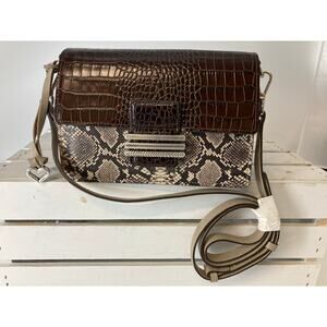 BRIGHTON ANIMAL PRINT BROWN GRAY LEATHER SMALLCROSSBODY BAG