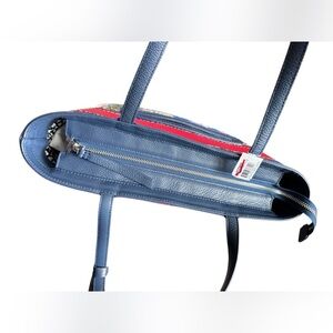 BRIGHTON BEE HAPPY LEATHER TOTE HANDBAG PURSE NAVY BLUE RED BOW HEARTS