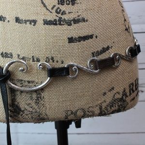 VERY VERSITLE BEING BROWN AND BLACK. BRIGHTON HEARTS ON THE ENDS. SIZE L