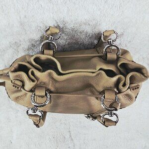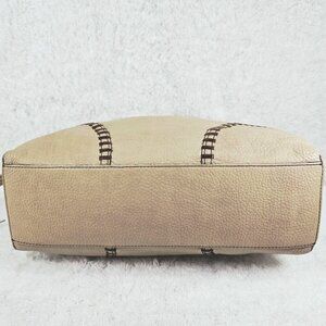BRIGHTON Beige Pebble Leather Hobo Shoulder Bag Whipstitching Tassel Drawstring
