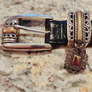 Brighton belt in black crocodile pattern featuring a rectangle two-tone charm.