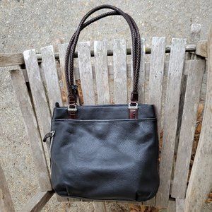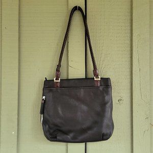 BRIGHTON Black Leather Brown Mock Croc Shoulder Bag