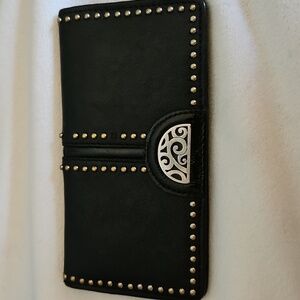 BRIGHTON Black Leather Studded Checkbook Cardholder Wallet