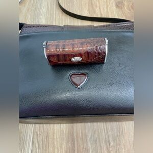 BRIGHTON Black Pebble Leather & Brown Croc Medium Shoulder Bag FREE with Purchase MATCHING LIP STICK CASE