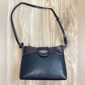 BRIGHTON Black Pebble Leather & Brown Croc Medium Shoulder Bag FREE GIFT
