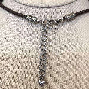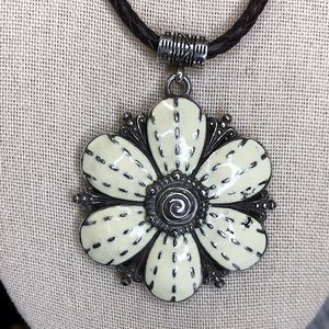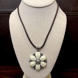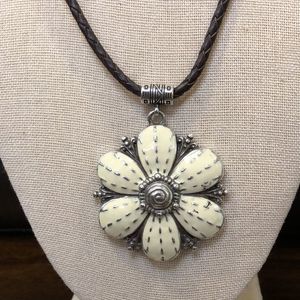 BRIGHTON Braided Leather Necklace with Floral Multi-Texture Flower Pendant