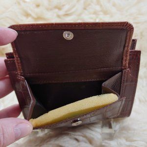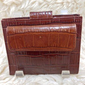 BRIGHTON Brown Embossed Croc Leather Bifold Wallet