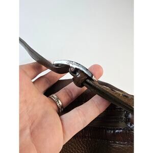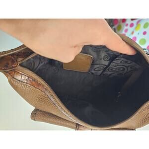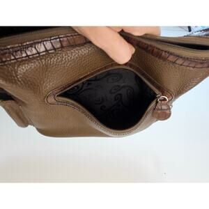 BRIGHTON Brown Leather w/ Croc Embossed Trim Satchel Shoulder Bag pre owned