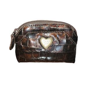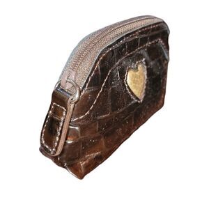BRIGHTON Brown Patent CrocEmbossed Coin Purse Zipper Pouch 2 Dust Bags Bundle
