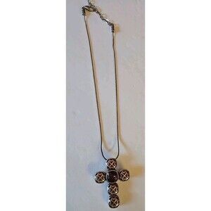BRIGHTON CROSS Brown & Purple Swarovski Crystal Enamel REVERSIBLE Necklace