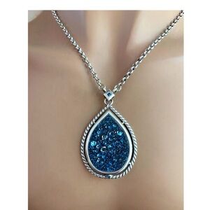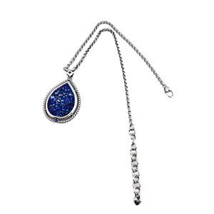 BRIGHTON CRYSTAL ROCKS BLUE DRUSY QUARTZ CRYST SLVR TEARDROP MESSAGE NECKLACE