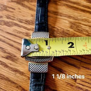 Special Features: Beautiful Rectangular Crystal in Silver Plate finish, Textured Silver and Gold Details, Croc Black Leather band with Textured Silver Accents, White Crystal with Black Markers, Second Hand Function, NEW BATTERY! 7 Holes for a perfect fit, Southwest Flair and Vintage!! Love it ❣️