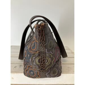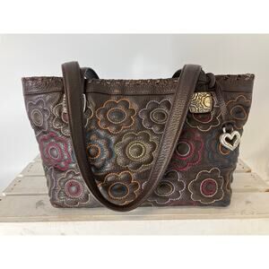BRIGHTON D757287 BROWN LEATHER MULITI FLORAL SHOULDER BAG