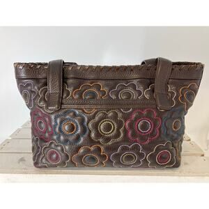 BRIGHTON D757287 BROWN LEATHER MULITI FLORAL SHOULDER BAG