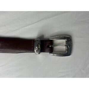 BRIGHTON Denver Diamond Italian Brown Leather Silver Belt P3507 Men’s Size 38