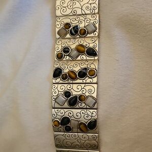 BRIGHTON Eye of the Tiger Multi-gemstone Scroll Wide Tile Bracelet
