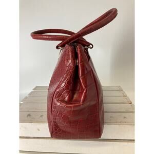 BRIGHTON F352136 RED LEATHER EMBOSSED ANIMAL PRINT HANDBAG