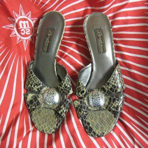 ❤️BRIGHTON Kaye Python Snake Print Leathe Silver Accent Slide Sandals Shoes