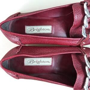 BRIGHTON Klee Leather Slip On Loafer W's 7.5 Burgundy Retro Classic Made Brazil