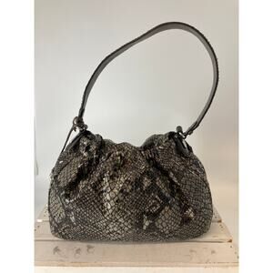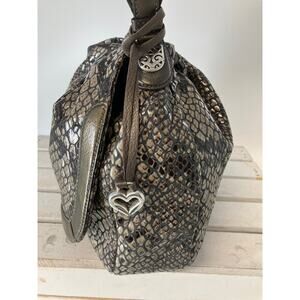 BRIGHTON, LARGE METALIC ANIMAL PRINT SHOULDER BAG WITH CHARM