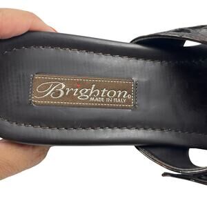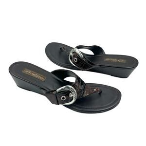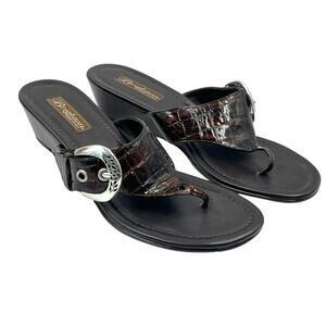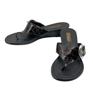 BRIGHTON LARK WEDGE SANDALS BROWN SILVER PATENT CROCODILE THONGS SLIP ONS SIZE 8