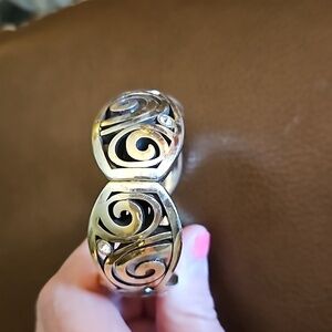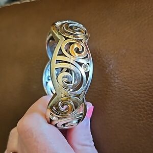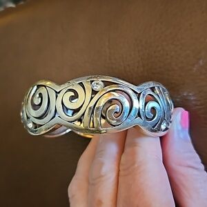 BRIGHTON London Groove Swirl Crystal Castlecore Chunky Bangle Clamper Bracelet