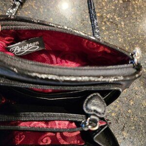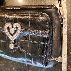 BRIGHTON PATENT ALLIGATOR WITH ROPE AND HEART DETAIL CROSS BODY BAG
