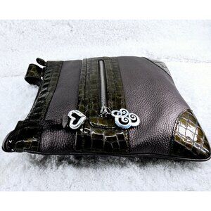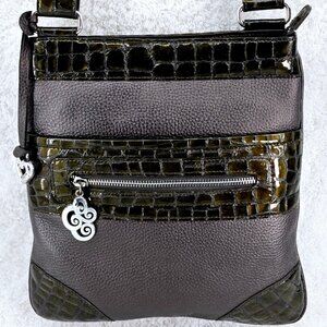 BRIGHTON Pewter Pebble Faux Patent Croc Leather Adjustable Strap Crossbody