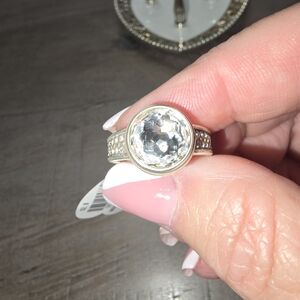 This stunning silver ring features a dazzling crystal accent, perfect for adding a touch of elegance to any outfit. Ideal for special occasions or everyday wear.