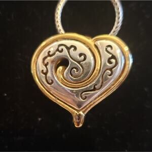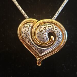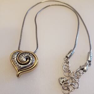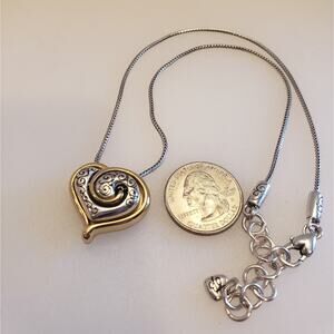 BRIGHTON Reversible two tone Silver gold puff heart pendant necklace