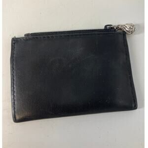 BRIGHTON SMALL BLACK LEATHER CARD WALLET WITH HEART WINDOW