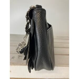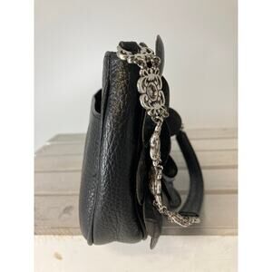 BRIGHTON SMALL BLACK LEATHER FLOWER PETAL SHOULDER BAG