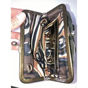 BRIGHTON SMALL OLIVE GREEN VINTAGE FLOWER COIN BAG WITH CLASP