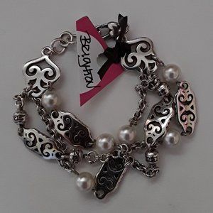 Retired BRIGHTON 3 Strand Scroll Panel & Pearls Bracelet