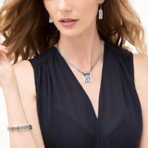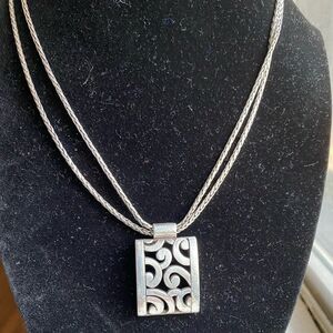Brighton silver Rectangle Double Strand Deco Lace Necklace. EUC, great shape, Art Deco inspired, approximately 17” with extender, Pendant Drop: 1 1/4", sew listings for matching bracelet made earrings, see pictures for details.