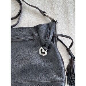 BRIGHTON Small Interlok "Arden" Crossbody Black Leather Drawstring