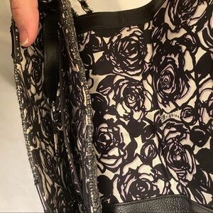 BRIGHTON Small Tweed Black / White Hobo Shoulder Handbag Purse Magnetic Closure. Excellent preowned condition inside and out!! This classic bag is perfect with any outfit! Height measures approx 7.5”. Width measures approx 10.5”. Depth measures approx 3.5”. Quality tweed and patent leather with flower and studs accents.