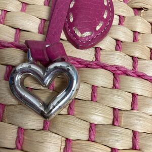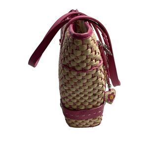 BRIGHTON Tan & Pink Basketweave Handbag Satchel Purse 15X3.75X10